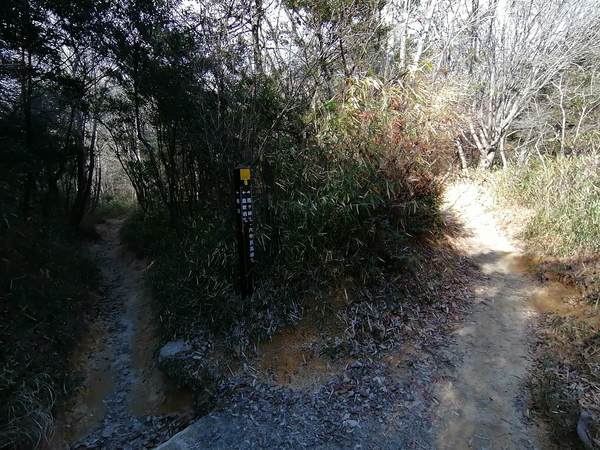 5~10分ほど藪の中を進むと、また看板がありました。どうやら池をぐるりと周って、山頂へ続く山道に戻ってきたようです。